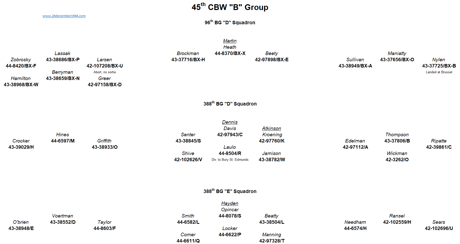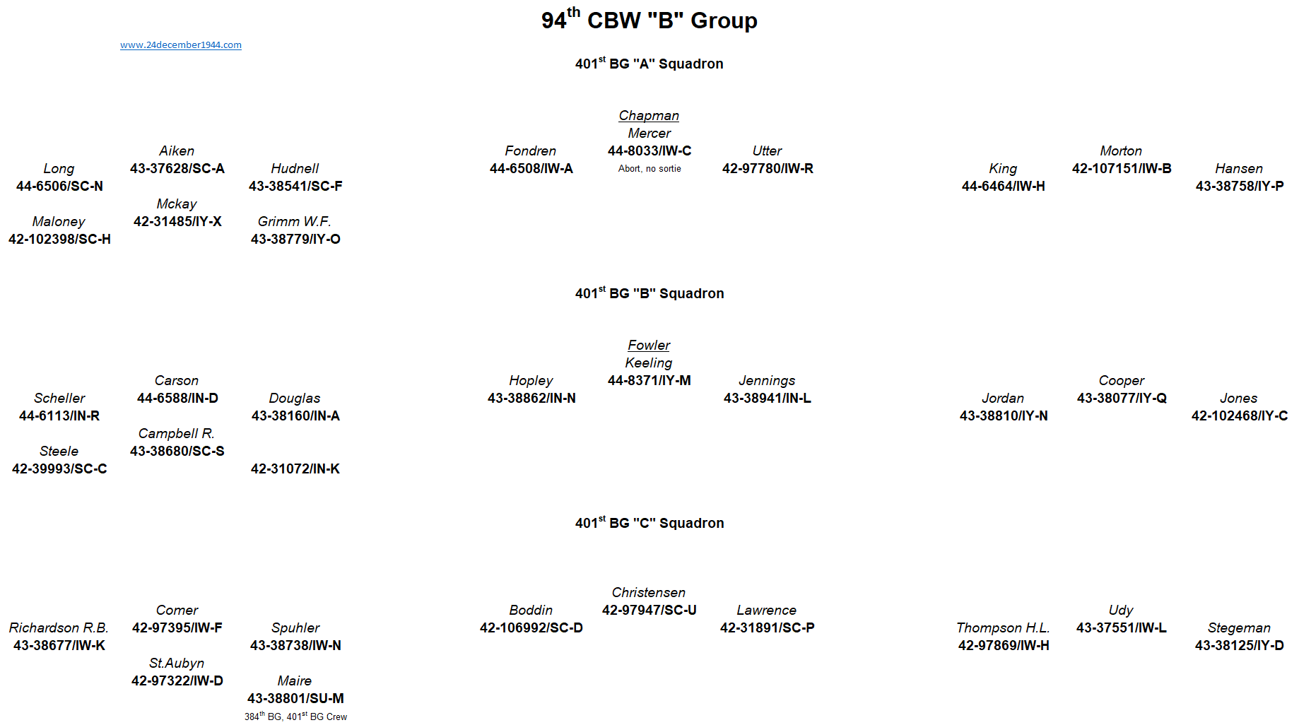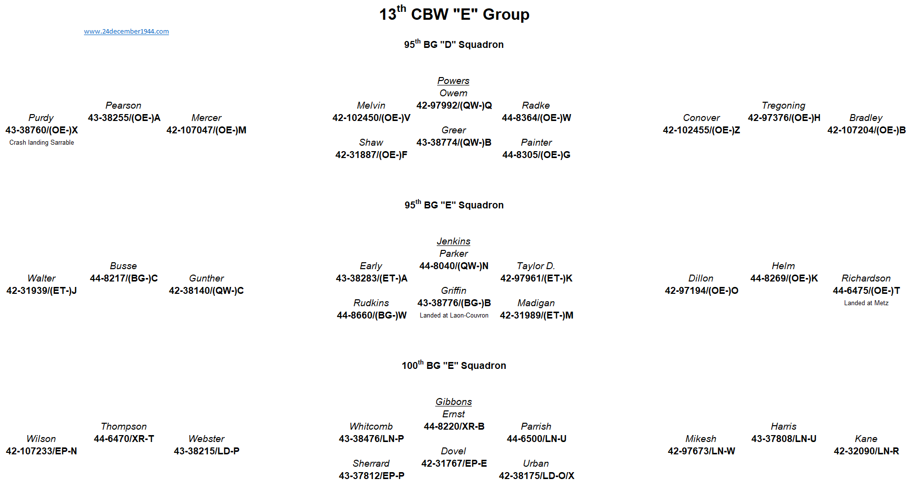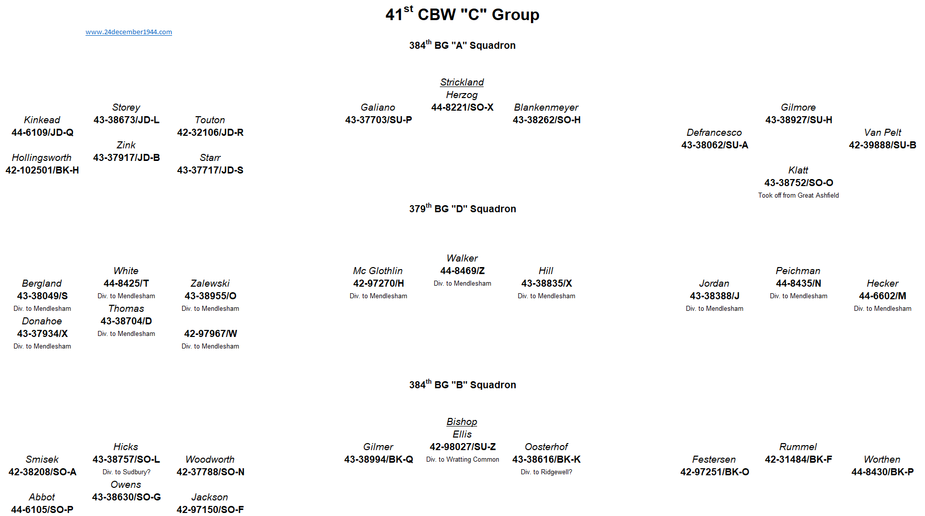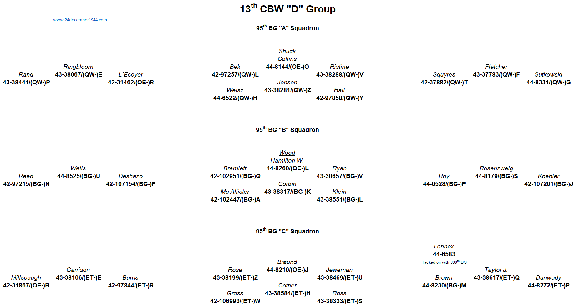 91st BG, 92nd BG, 303rd BG, 305th BG, 306th BG, 351st BG, 379th BG, 381st BG, 384th BG, 398th BG,401st BG, 457th BG.