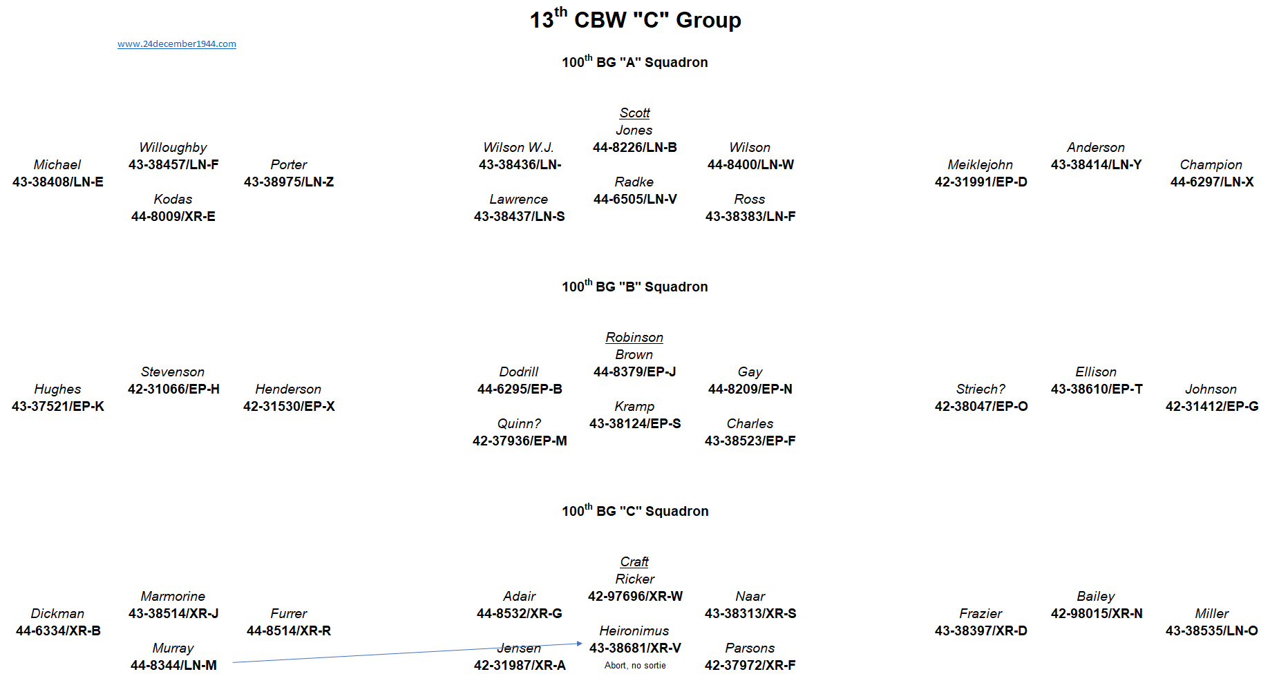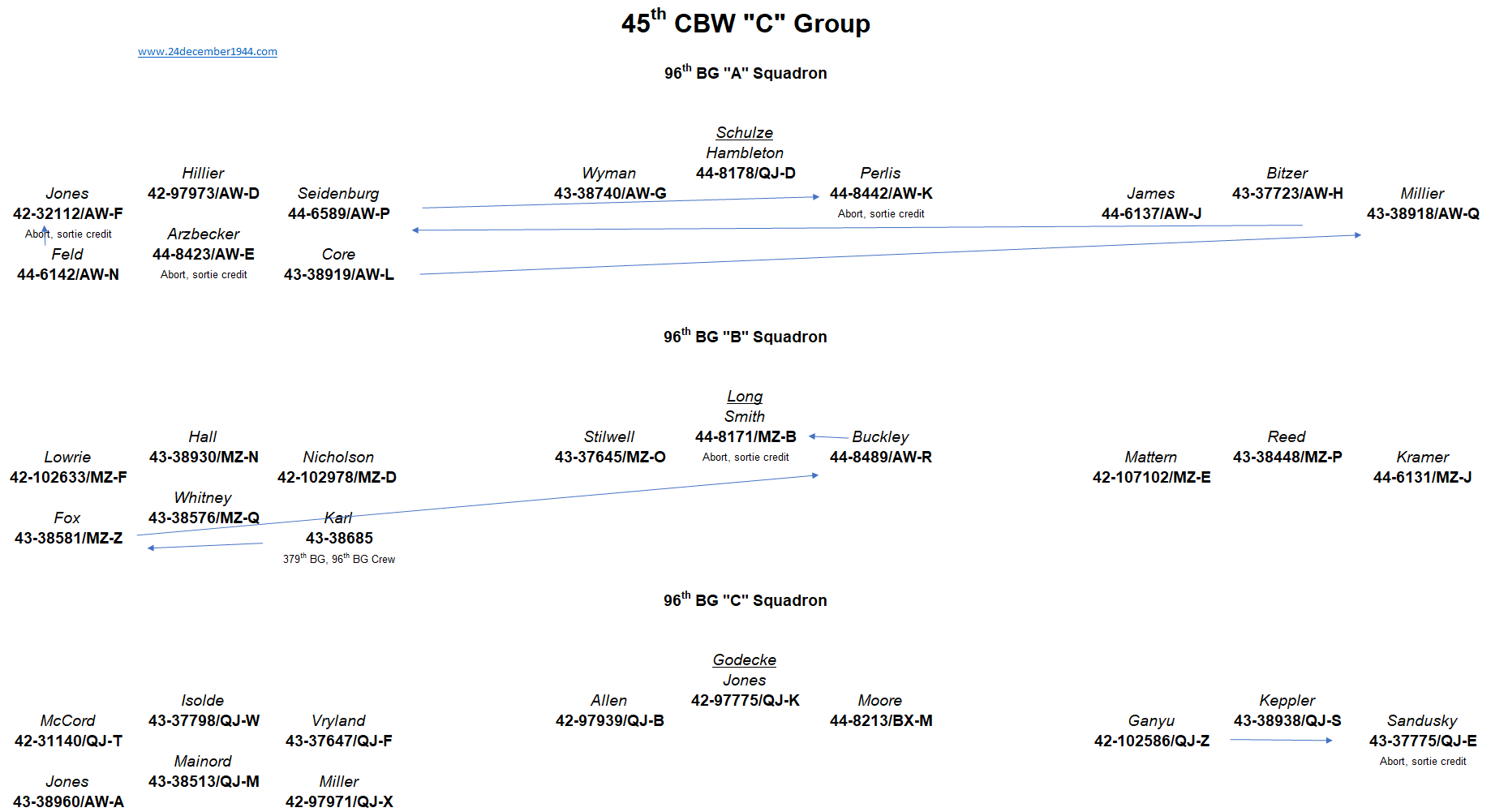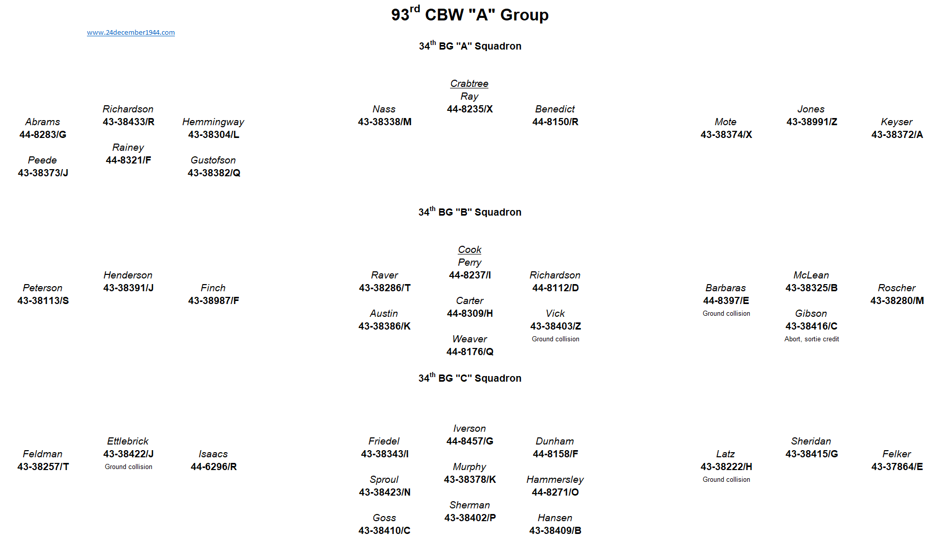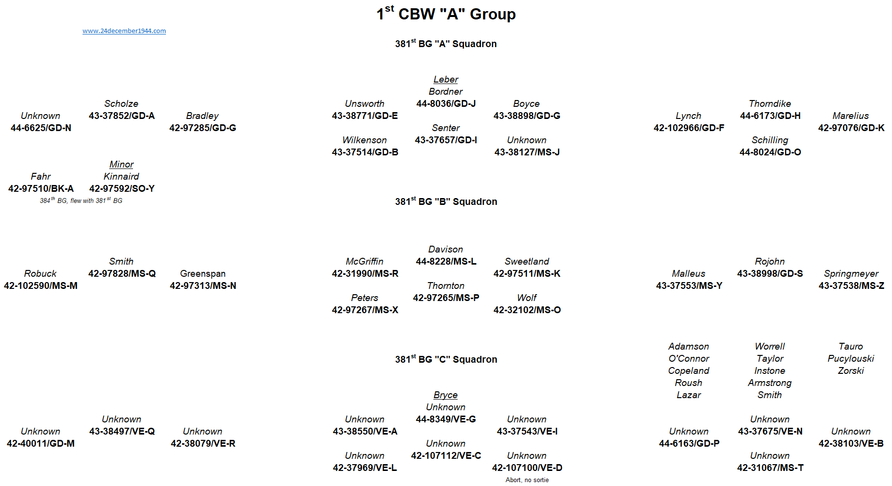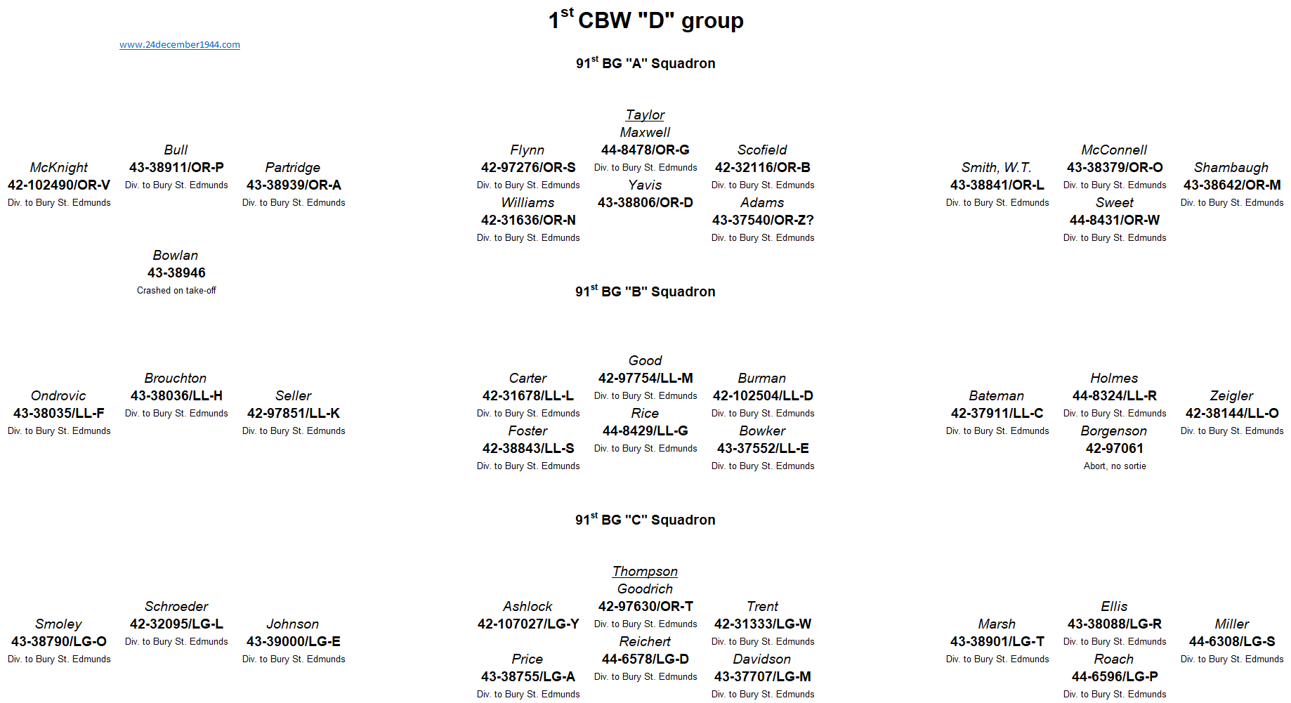 91st BG, 92nd BG, 303rd BG, 305th BG, 306th BG, 351st BG, 379th BG, 381st BG, 384th BG, 398th BG,401st BG, 457th BG.