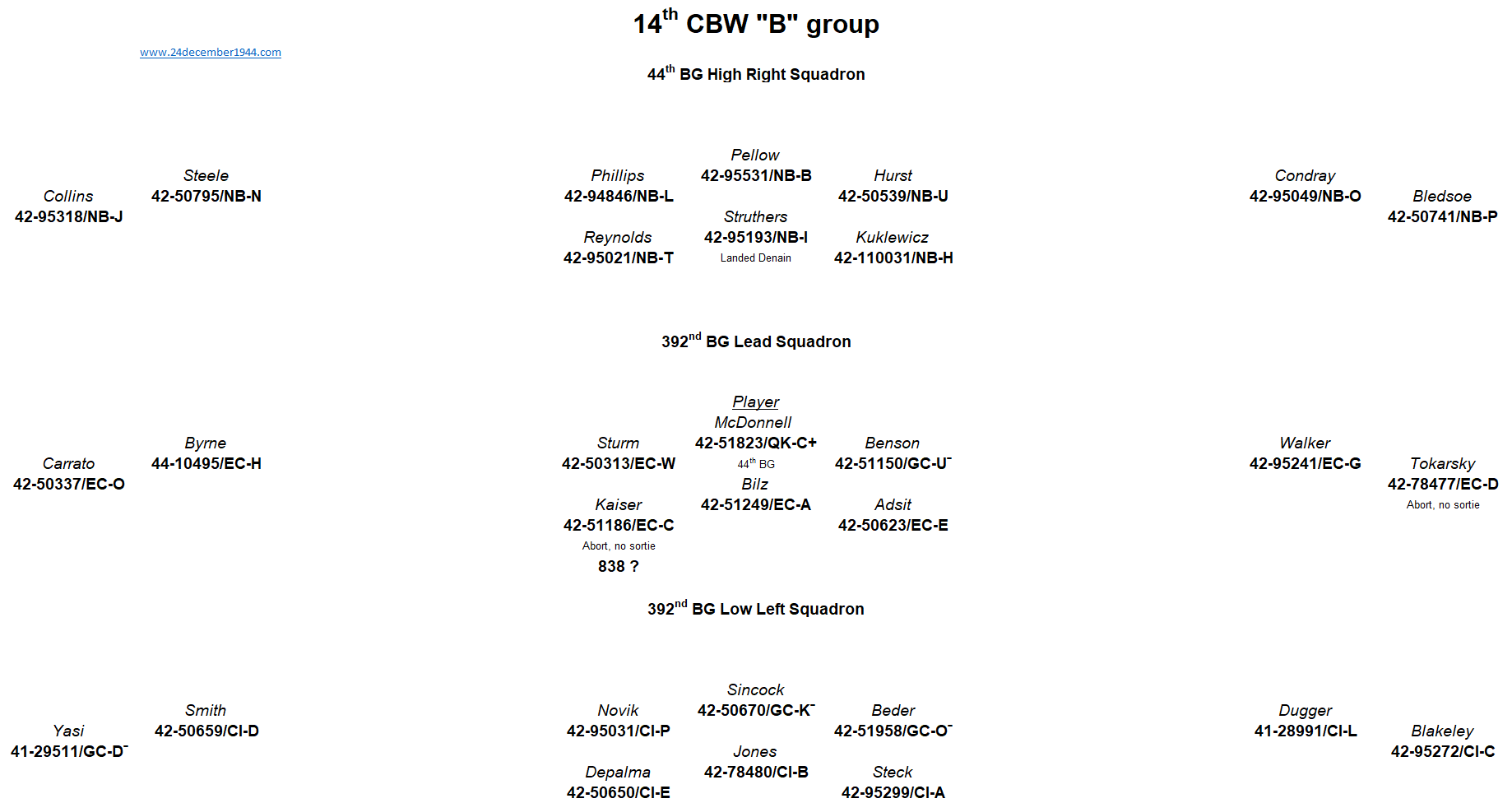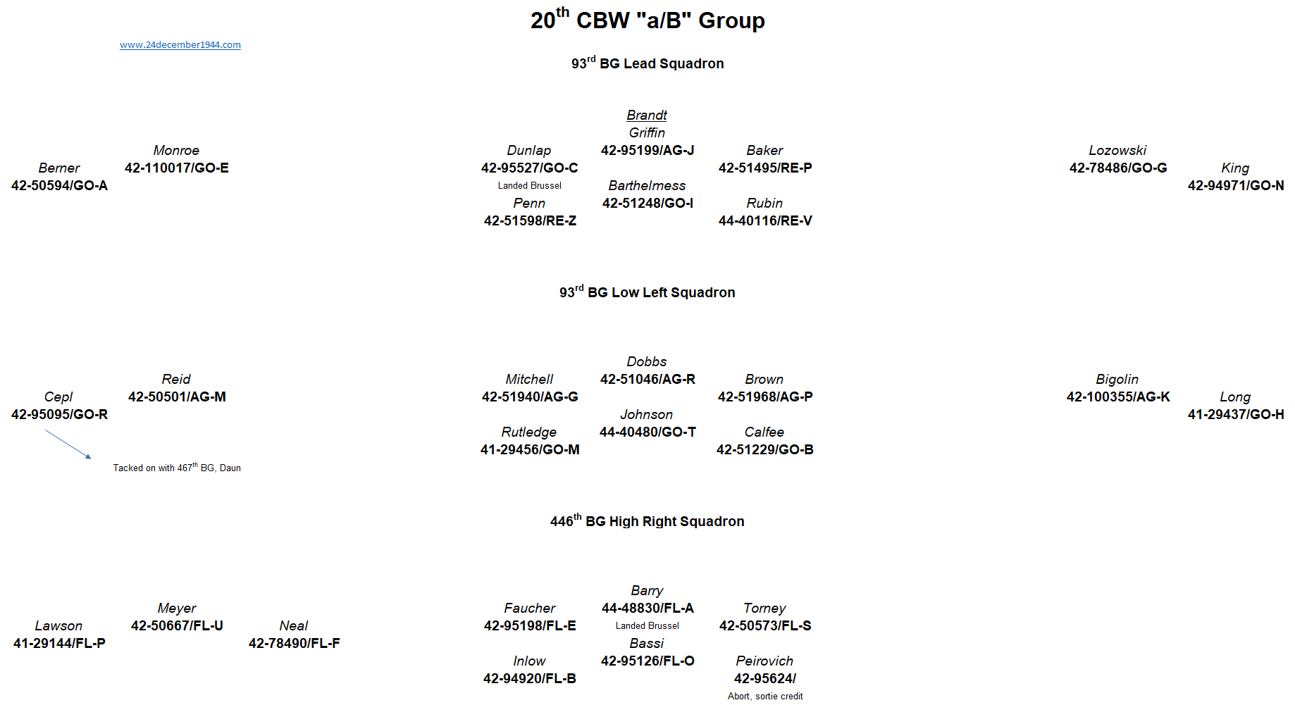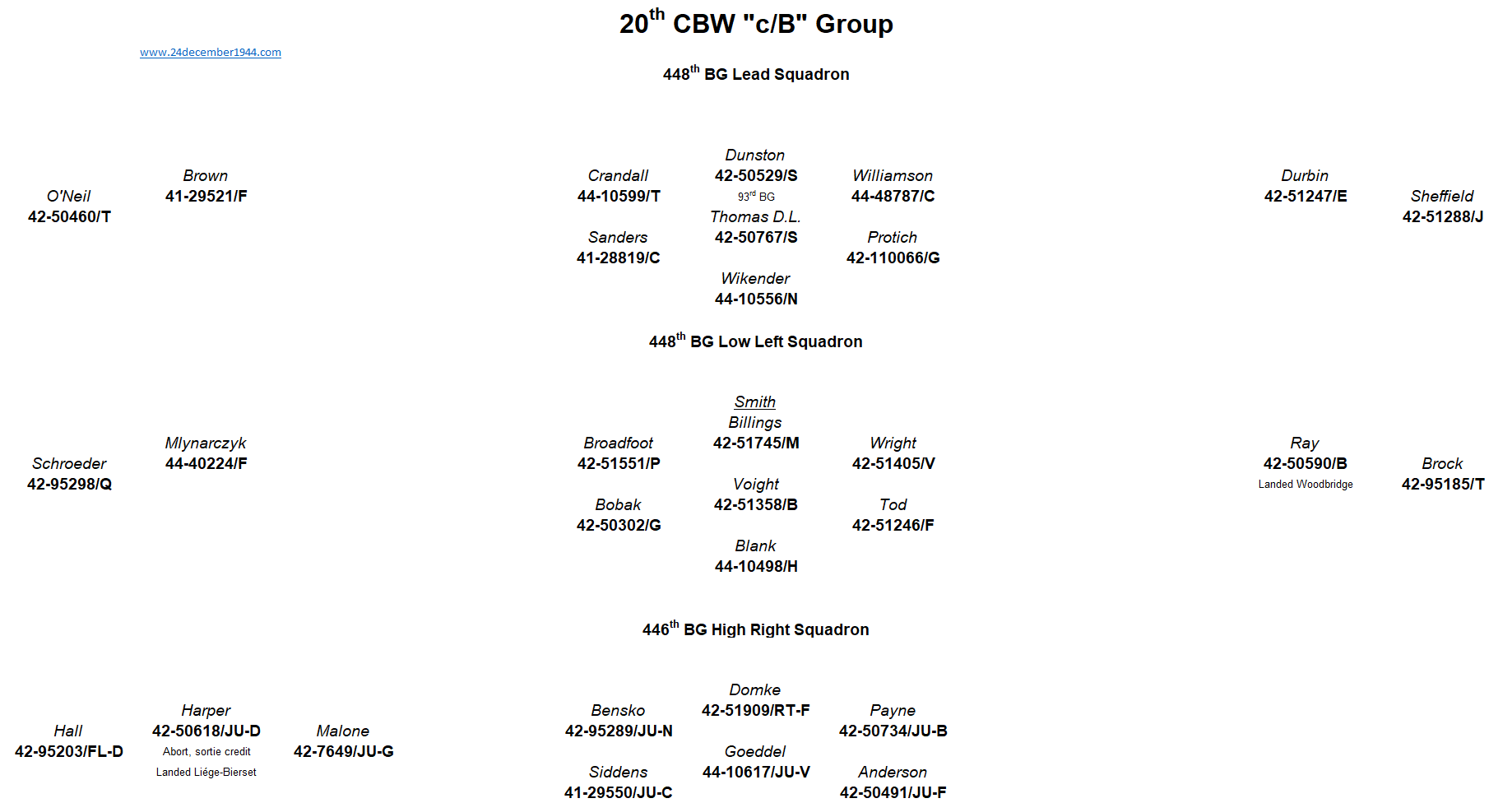 44th BG, 93rd BG, 389th BG, 392nd BG, 445th BG, 446th BG, 448th BG, 453rd BG, 458th BG, 466th BG, 467th BG, 491st BG