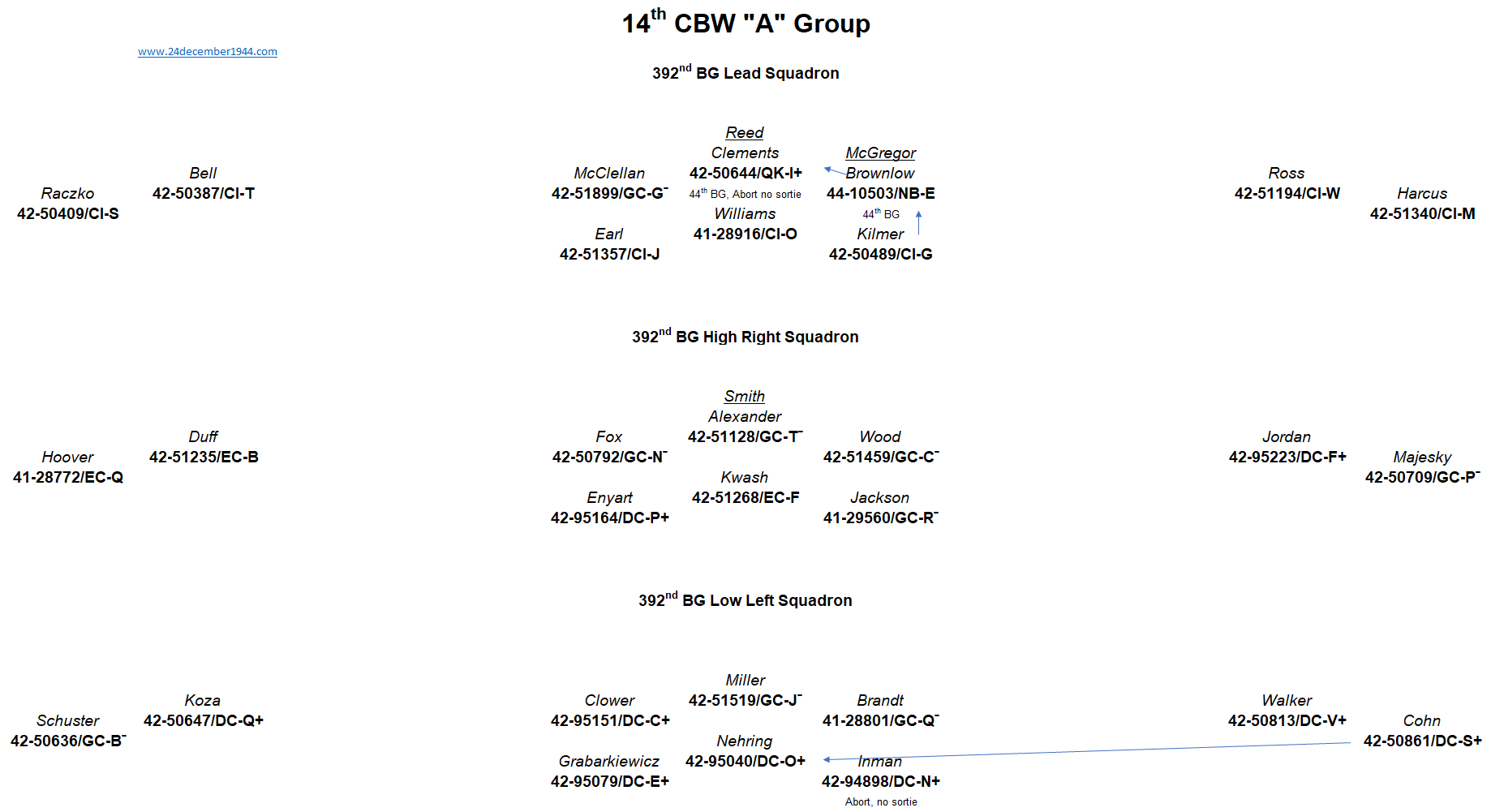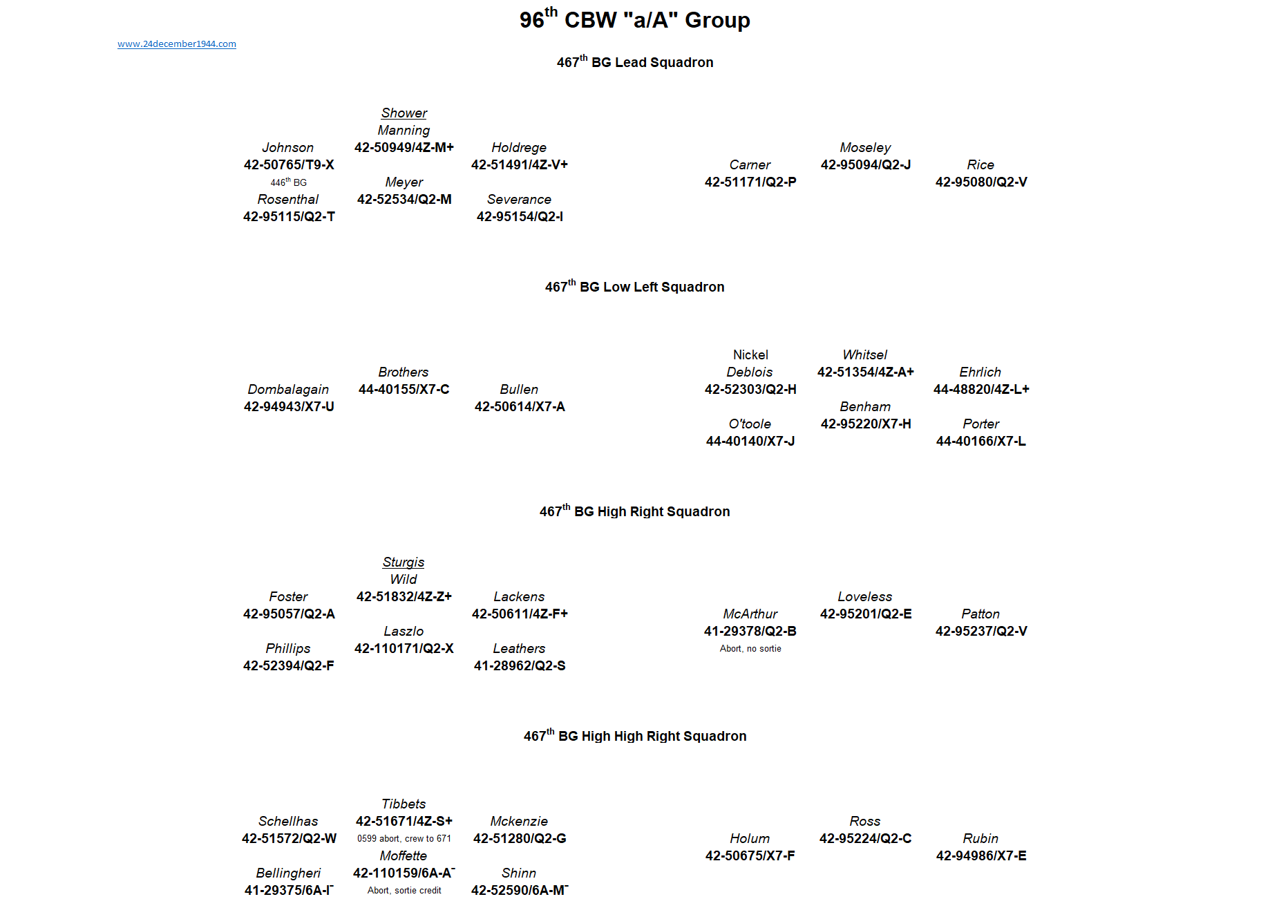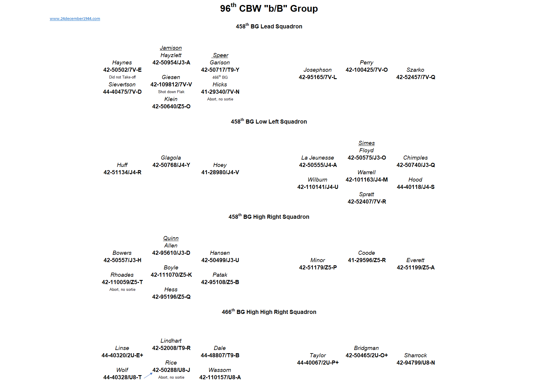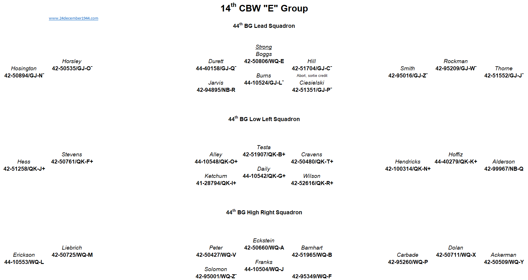 44th BG, 93rd BG, 389th BG, 392nd BG, 445th BG, 446th BG, 448th BG, 453rd BG, 458th BG, 466th BG, 467th BG, 491st BG